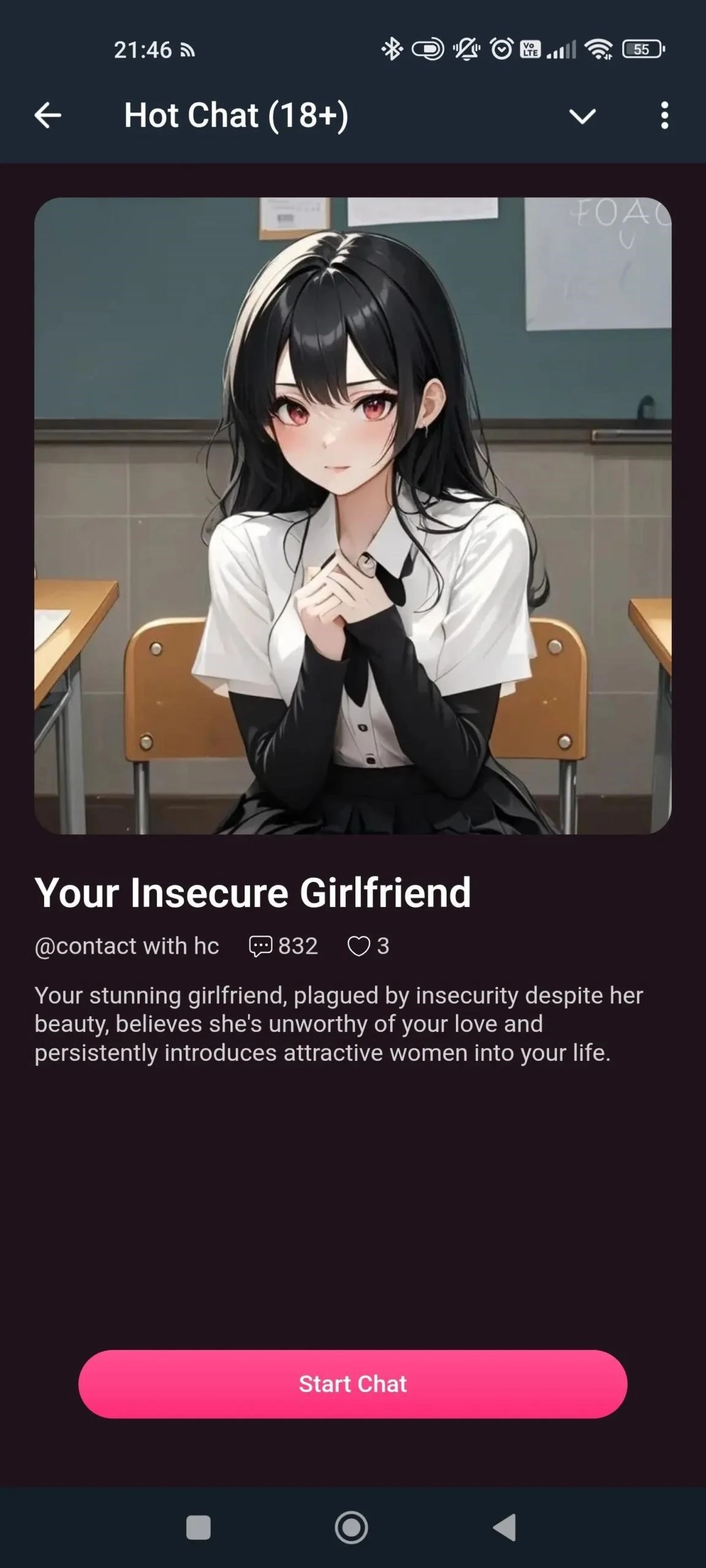 Горячий чат с ИИ 18+ - приватное мини-приложение для общения с ИИ-персонажами 18+. Создавайте собственные сценарии, выбирайте стиль диалогов и получайте адаптивные ответы без лишних настроек.