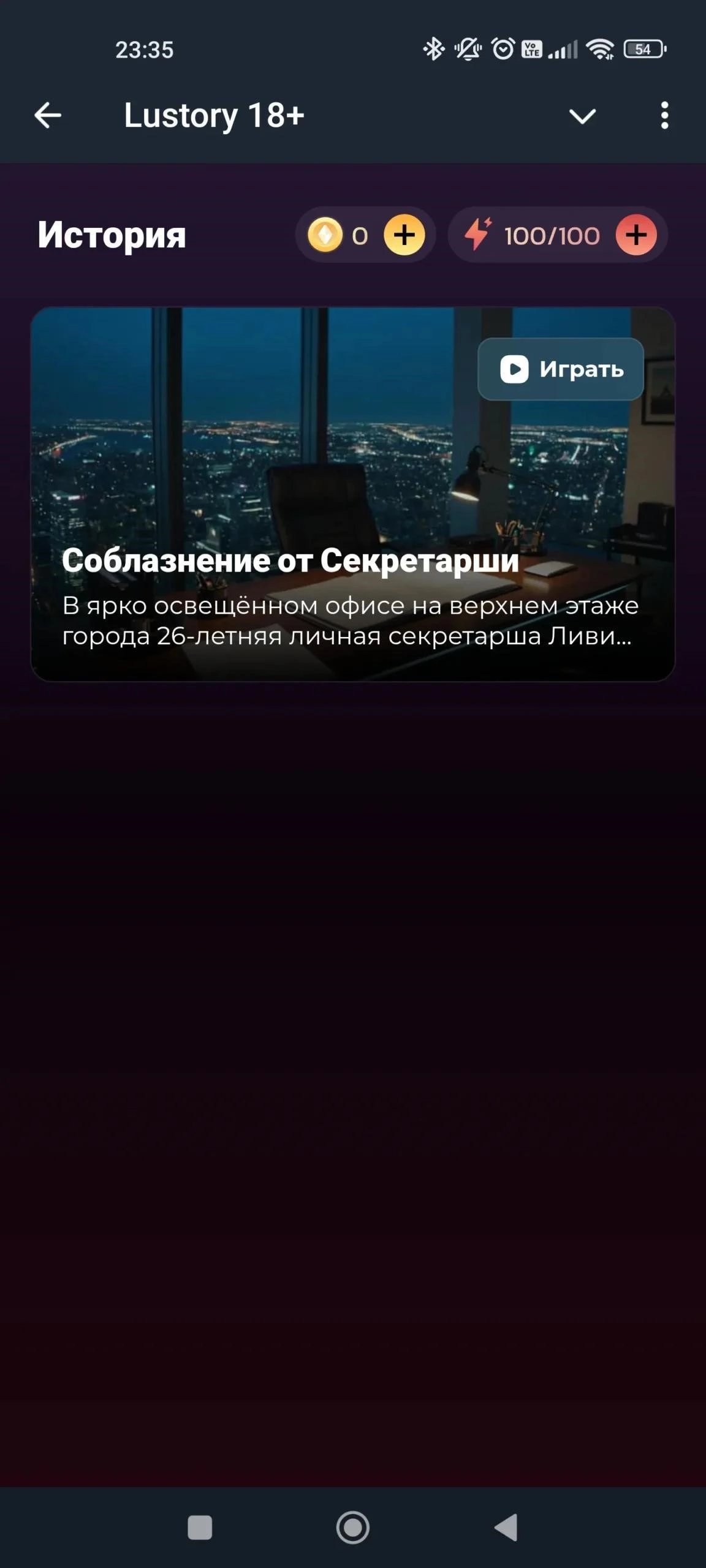 Lustory AI 18+ - интерактивное приложение, позволяющее общаться с виртуальными персонажами. Оно создано для тех, кто ищет нестандартные формы общения и хочет окунуться в увлекательные сценарии, управляя развитием диалога.
