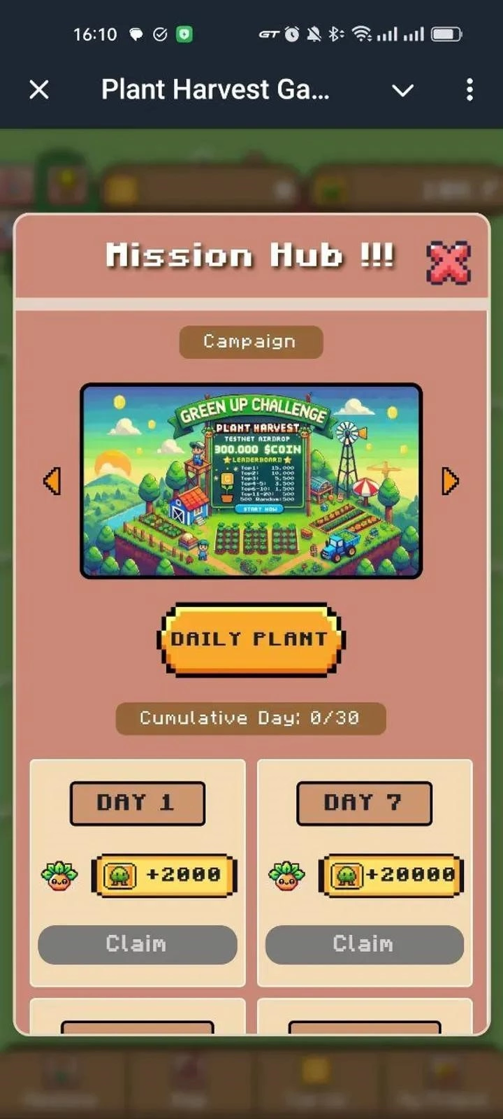 Plant Harvest Game - мини-игра формата play-to-airdrop: сажайте культуры, собирайте урожай и накапливайте очки, которые могут участвовать в будущих активностях и раздачах. Запуск происходит прямо внутри мессенджера, без отдельной установки приложений, что ускоряет вход и упрощает повторные сессии.