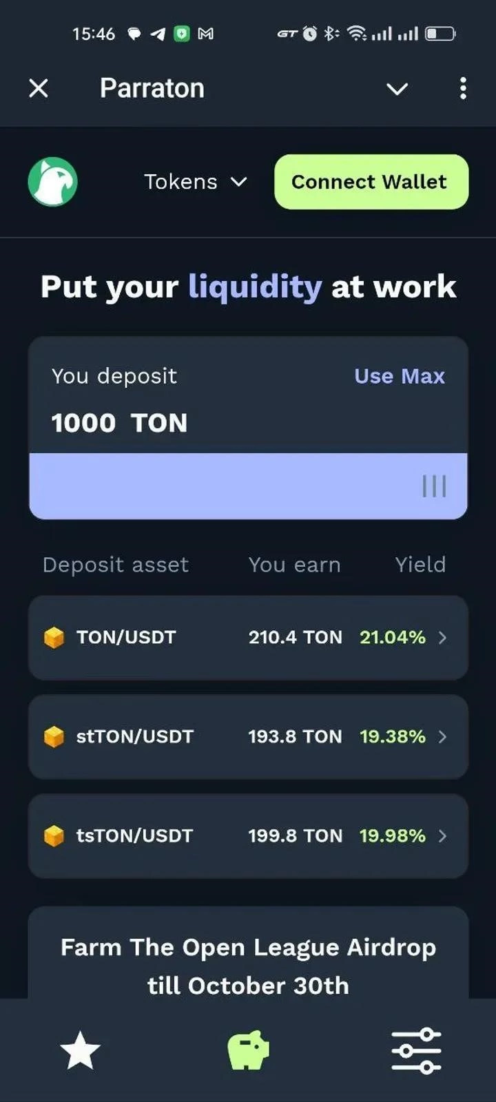 Parraton - инструмент, созданный для автоматизации управления доходностью в сфере DeFi. Он работает с экосистемой TON и помогает юзерам эффективно распределять активы, минимизировать риски и увеличивать прибыль за счёт оптимизации инвестиционных стратегий.