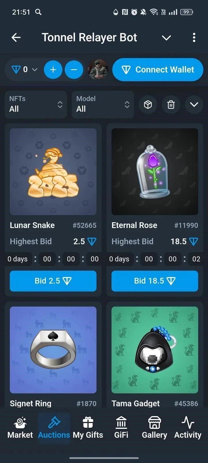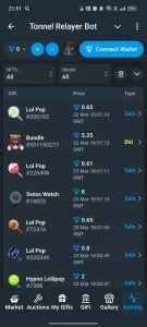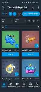 Tonnel Relayer Bot - инструмент, который объединяет возможности анонимных операций, бонусов и торговли в одном месте. Пользователь получает удобный интерфейс для участия в проектах, связанных с криптовалютами и цифровыми активами.