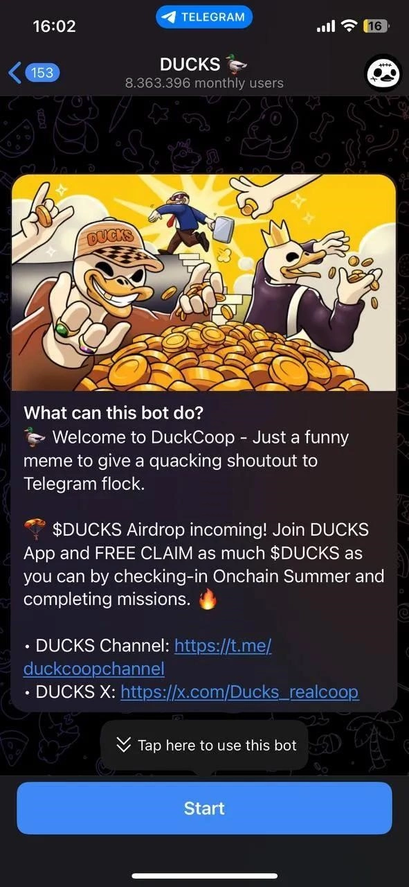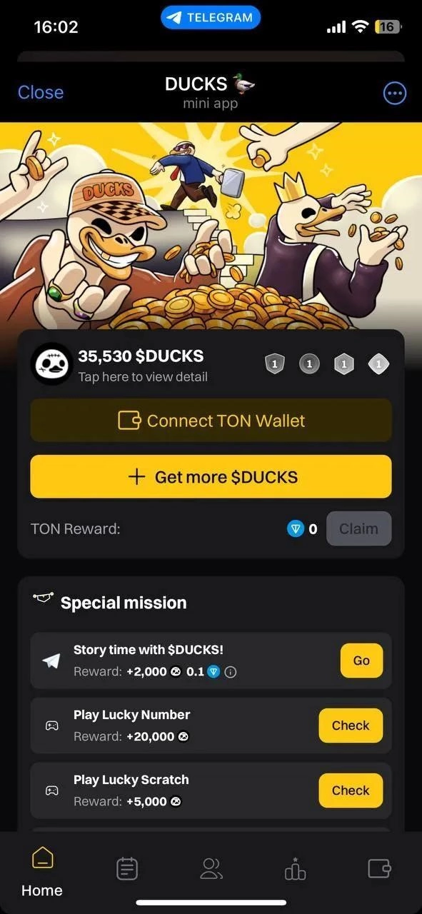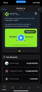 DUCKS - ΠΈΠ³ΡΠΎΠ²ΠΎΠ΅ ΠΌΠΈΠ½ΠΈ-ΠΏΡΠΈΠ»ΠΎΠΆΠ΅Π½ΠΈΠ΅, Π² ΠΊΠΎΡΠΎΡΠΎΠΌ ΠΏΠΎΠ»ΡΠ·ΠΎΠ²Π°ΡΠ΅Π»ΠΈ ΡΠΎΠ²ΠΌΠ΅ΡΠ°ΡΡ ΡΠ°Π·Π²Π»Π΅ΡΠ΅Π½ΠΈΠ΅ ΠΈ ΡΡΠ°ΡΡΠΈΠ΅ Π² ΡΠΈΡΡΠ΅ΠΌΠ΅ Π²ΠΎΠ·Π½Π°Π³ΡΠ°ΠΆΠ΄Π΅Π½ΠΈΠΉ. ΠΠ½ΠΎ ΡΠΎΡΠ΅ΡΠ°Π΅Ρ ΡΠ»Π΅ΠΌΠ΅Π½ΡΡ ΠΊΡΠΈΠΏΡΠΎ-ΠΈΠ³ΡΡ ΠΈ Π΄ΠΈΠ½Π°ΠΌΠΈΡΠ½ΡΡ Π·Π°Π΄Π°Π½ΠΈΠΉ, ΠΏΠΎΠ·Π²ΠΎΠ»ΡΡ Π·Π°ΡΠ°Π±Π°ΡΡΠ²Π°ΡΡ Π²Π½ΡΡΡΠΈΠΈΠ³ΡΠΎΠ²ΡΠ΅ Π±ΠΎΠ½ΡΡΡ ΠΈ ΡΠΎΠΊΠ΅Π½Ρ.