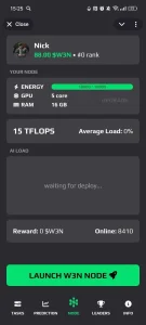 Платформа объединяет игровой прогресс, обучение ИИ и экономику Web3: вы повышаете характеристики ноды (GPU, RAM, Energy), накапливаете награды и участвуете в активностях вроде предсказательных раундов, которые одновременно обучают модель и открывают дополнительные призы.