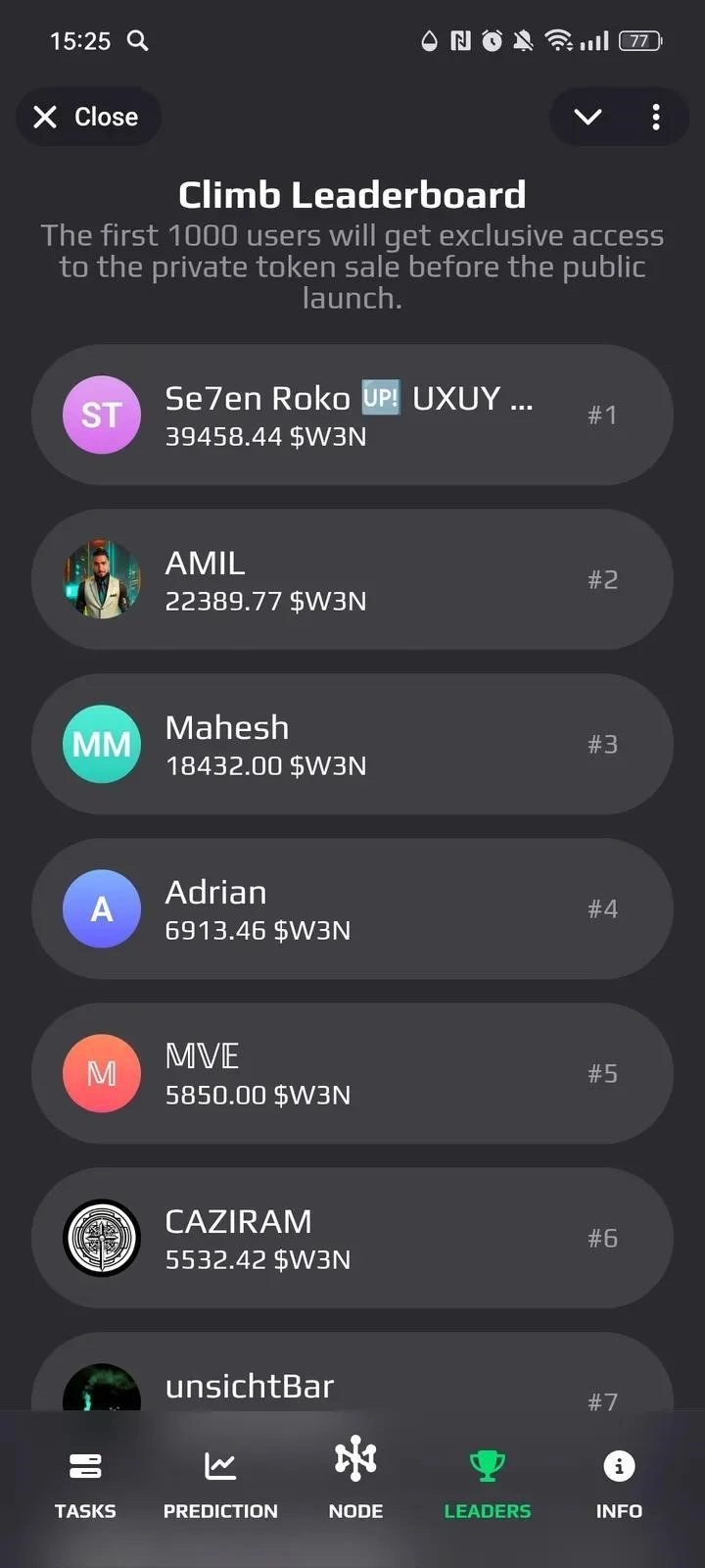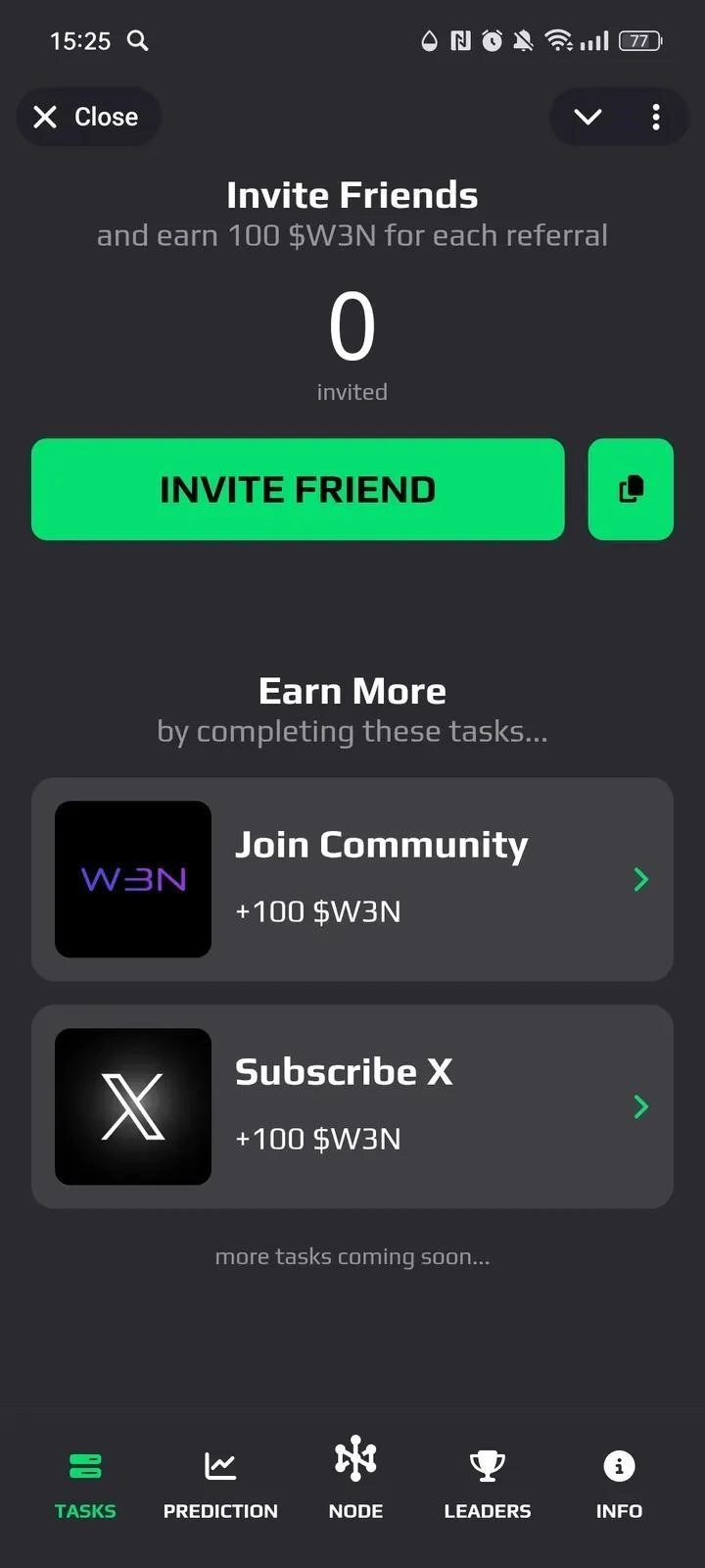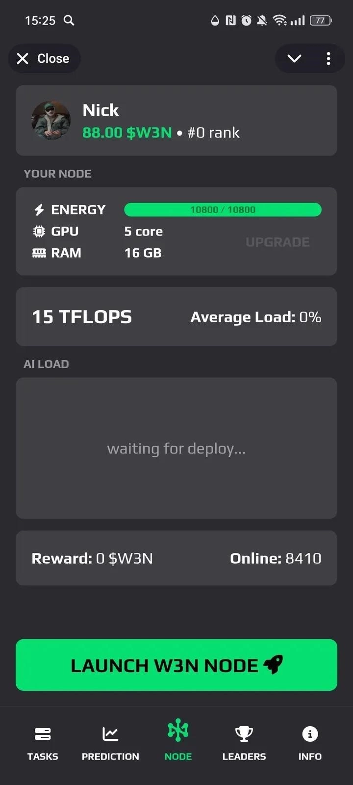W3N - мини-приложение, где юзеры запускают AI-ноды, помогают обучать децентрализованный ИИ и получают вознаграждение в виде W3N-токенов. Основная механика - майнинг через виртуальные параметры мощности и участие в игровых активностях, усиливающих вклад в общую модель.
