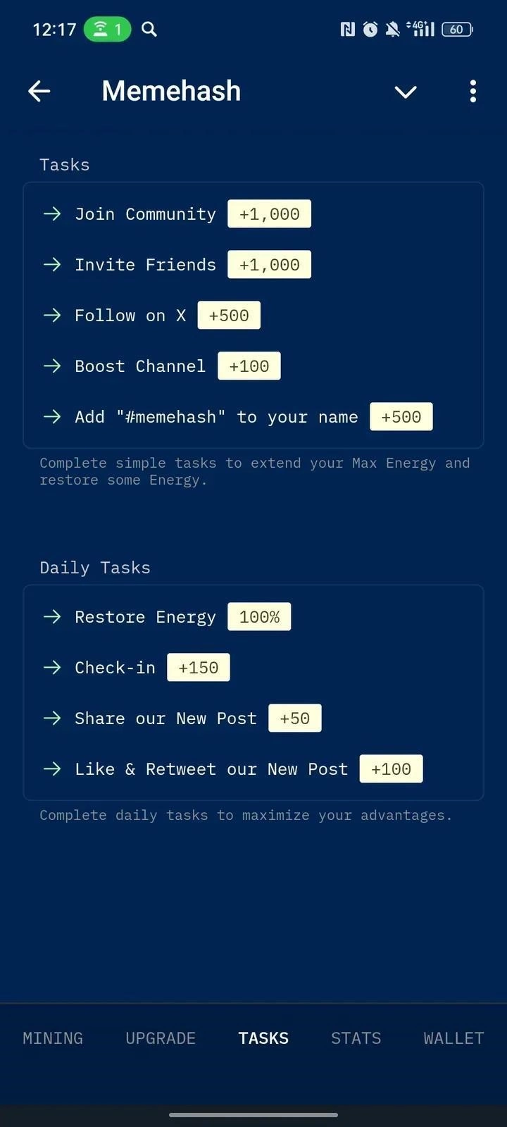 Откройте Memehash, нажмите Старт и оставьте приложение работать. Баланс будет пополняться по мере нахождения валидных хэшей; по окончании кампании ваши начисления отправят на кошелёк в сети TON. Такой формат подойдёт тем, кто хочет потрогать PoW-механику в игровом виде и параллельно претендовать на долю фиксированной эмиссии.