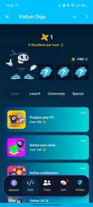Shuriken (a.k.a. Vottun Dojo) - учебное мини-приложение с упором на Web3-навыки. Оно сочетает короткие уроки, практику и геймификацию, чтобы быстрее освоить базовые и прикладные темы: от принципов блокчейна до безопасной работы с кошельками и dApp-сервисами.