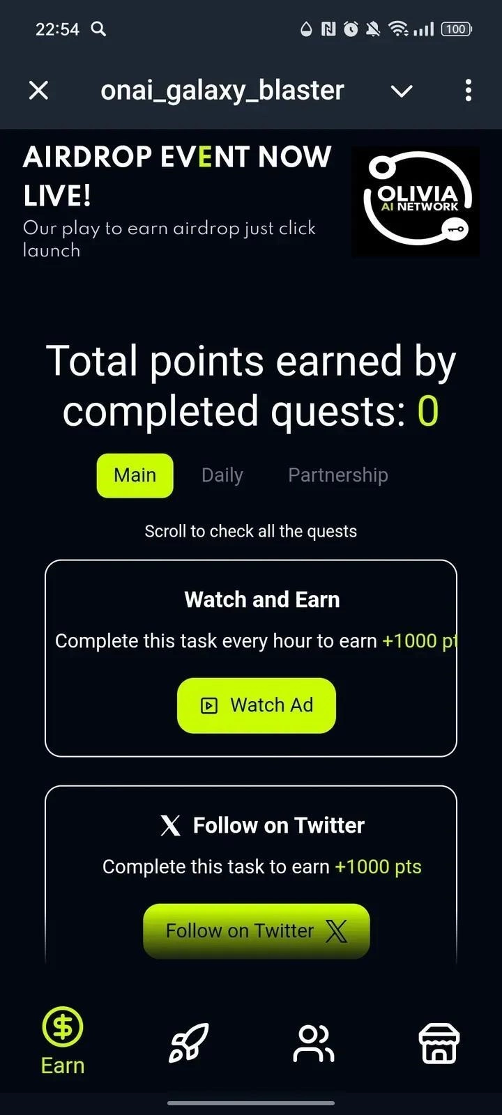 Onai Galaxy Blaster - геймифицированное приложение для сбора airdrop-токенов в виде увлекательной игры. Юзеры могут участвовать в игровом процессе, зарабатывая токены через выполнение заданий и приглашение новых участников. Игра включает в себя механики рефералов и апгрейдов.