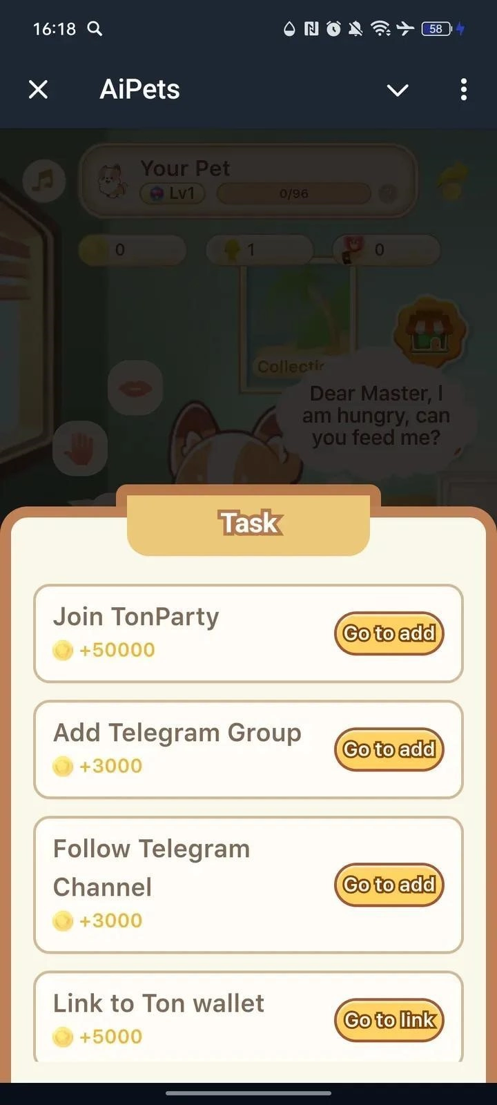 Мини-приложение запускается прямо в чате: интерфейс открывается поверх диалога, поддерживает авторизацию и мгновенные платежи, поэтому геймплей и награды доступны без перехода на сторонние сайты. За сообщения питомцу, выполнение квестов и развитие навыков вы зарабатываете $PET и открываете новых компаньонов.