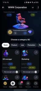 Приложение создано для тех, кто хочет развивать собственную цифровую корпорацию, участвовать в экономических процессах и обменивать ресурсы на внутренние активы. Стройте стратегии, расширять влияние и взаимодействовать с другими участниками, формируя уникальную экосистему внутри игры.
