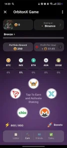 OrbitonX Game сочетает простоту кликера и возможности криптоэкономики, создавая развлекательную платформу с элементами заработка. Делает проект интересным как для любителей игр, так и для тех, кто ищет новые способы взаимодействия с цифровыми активами.