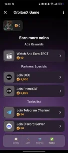 OrbitonX Game - кликер с элементами криптоэкономики, в котором пользователи выполняют задания, зарабатывают внутриигровые ресурсы и развиваются в игровом процессе. Проект сочетает игровую механику с возможностью получения цифровых активов.