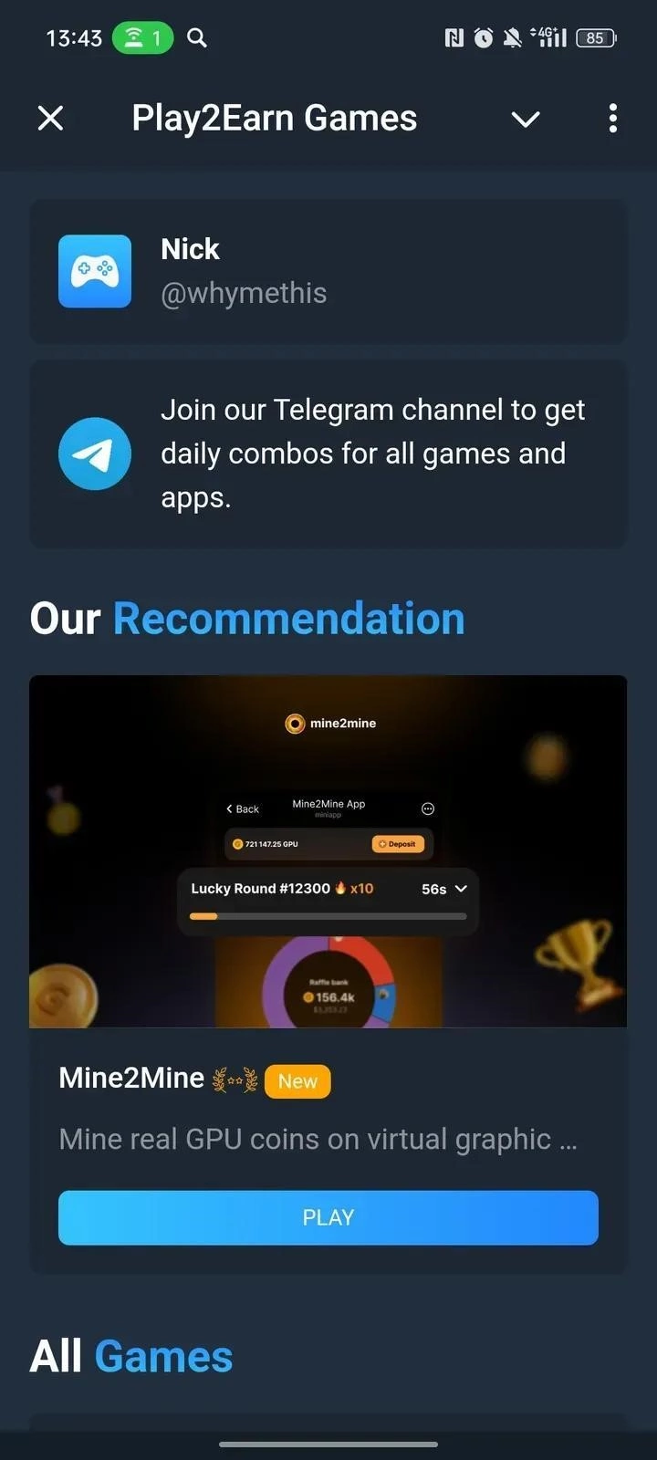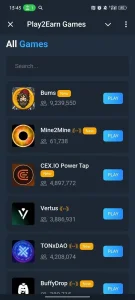 Play2Earn Games - удобное мини-приложение, объединяющее различные игры с системой заработка. Юзеры получают доступ к каталогу, где можно выбирать развлечения по жанрам и возможностям получения наград.