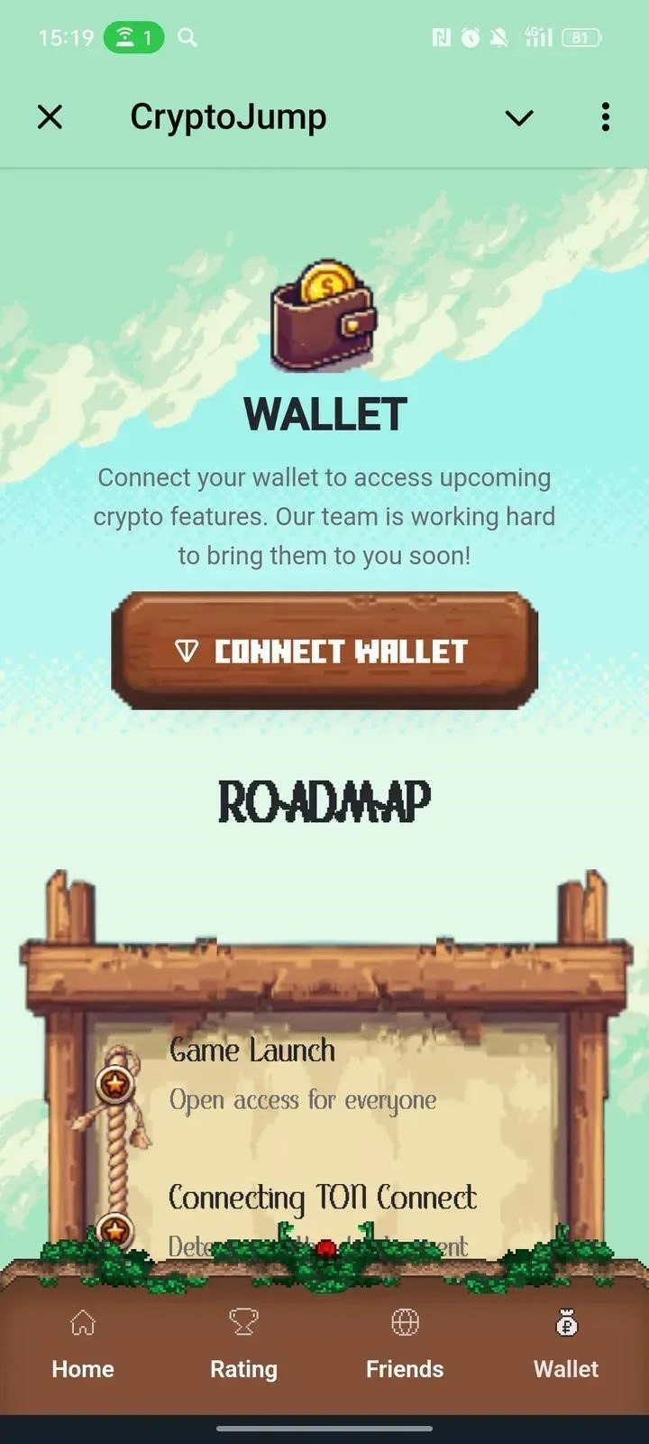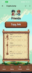 CryptoJump - аркадная мини-игра, в которой юзеры управляют персонажем, совершающим прыжки на платформы. В процессе можно зарабатывать внутриигровую валюту JumpCoins и соревноваться с другими пользователями в рейтингах. Простая механика и динамичный геймплей делают игру доступной и увлекательной для коротких игровых сессий.