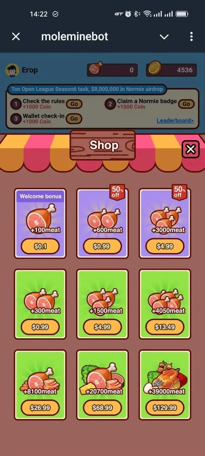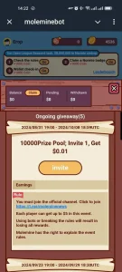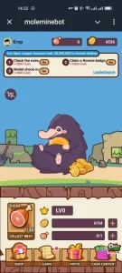 Moleminebot представляет собой игру с элементами play-to-earn, где юзеры получают виртуального питомца. Главная цель заключается в том, чтобы заботиться о нём, развивать его и при этом зарабатывать внутриигровые вознаграждения.