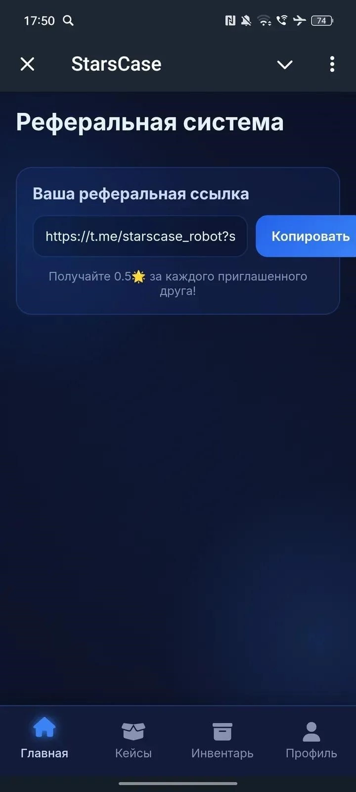Рабочая ссылка на StarsCase в Телеграм доступна ниже. Если она не открывается, сообщите нам - мы всё исправим.