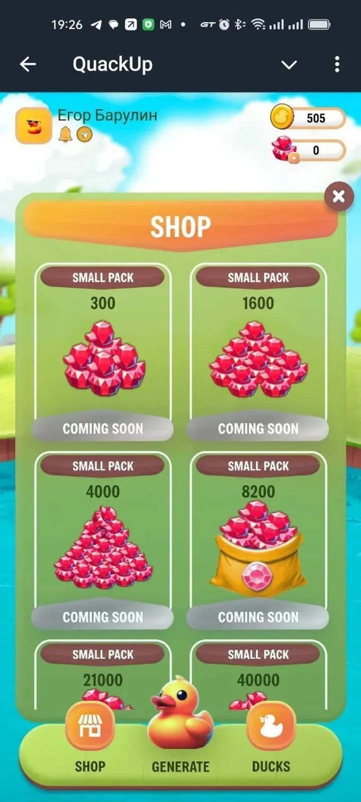 QuackUp - аркадная кликер-игра с динамичным темпом, где вы набираете очки быстрыми нажатиями и соревнуйтесь с другими пользователями в рейтинге. Вся логика построена вокруг простых действий и коротких игровых сессий, чтобы можно было играть на ходу.