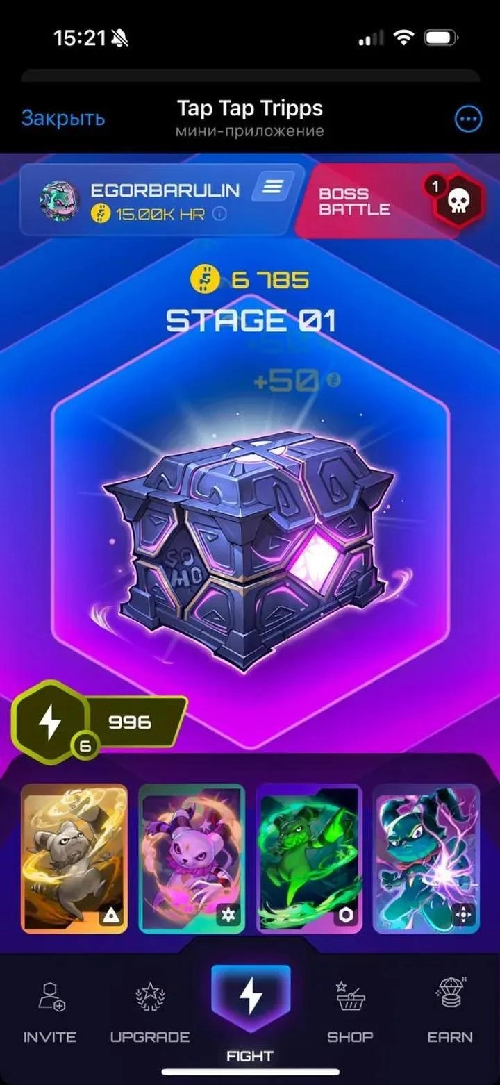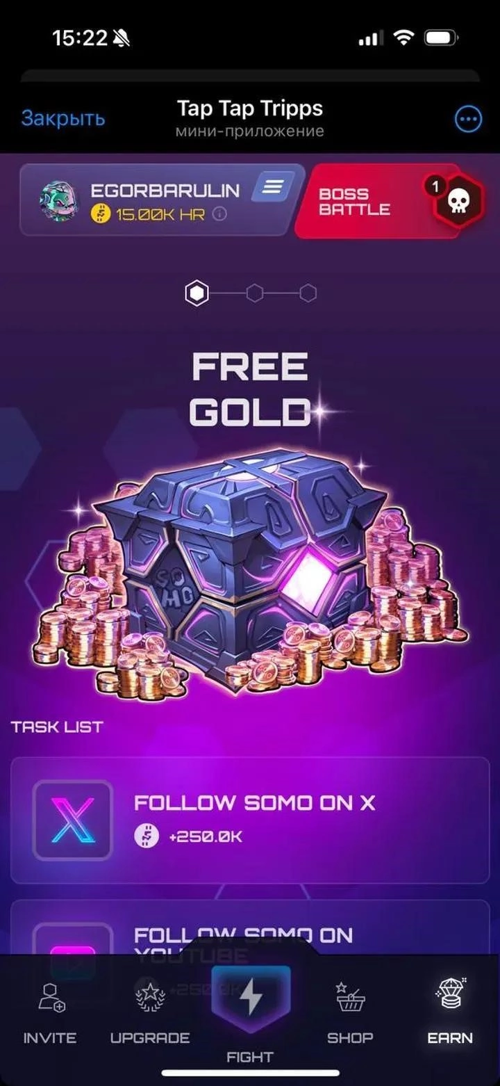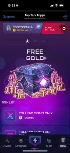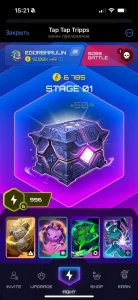 Главная идея - тапай, усиливайся, побеждай: накапливайте золото, прокачивайте наносимый урон и эффективность фарма, собирайте команду Tripps и берите боссов в один тап или через накопленные бусты. В официальных материалах подчеркивается простой порог входа и нарастающая награда за мастерство.