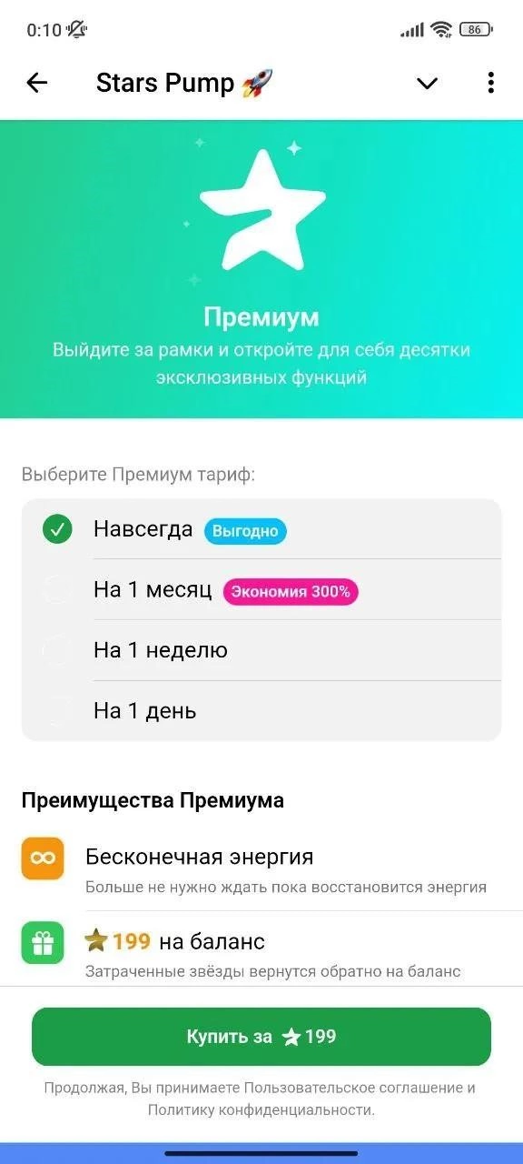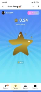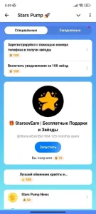 Stars Pump - игровое мини-приложение с механиками tap-to-earn, заданиями и реферальной системой: пользователи кликают по экрану, выполняют простые активности и накапливают Stars для дальнейшего использования внутри экосистемы.