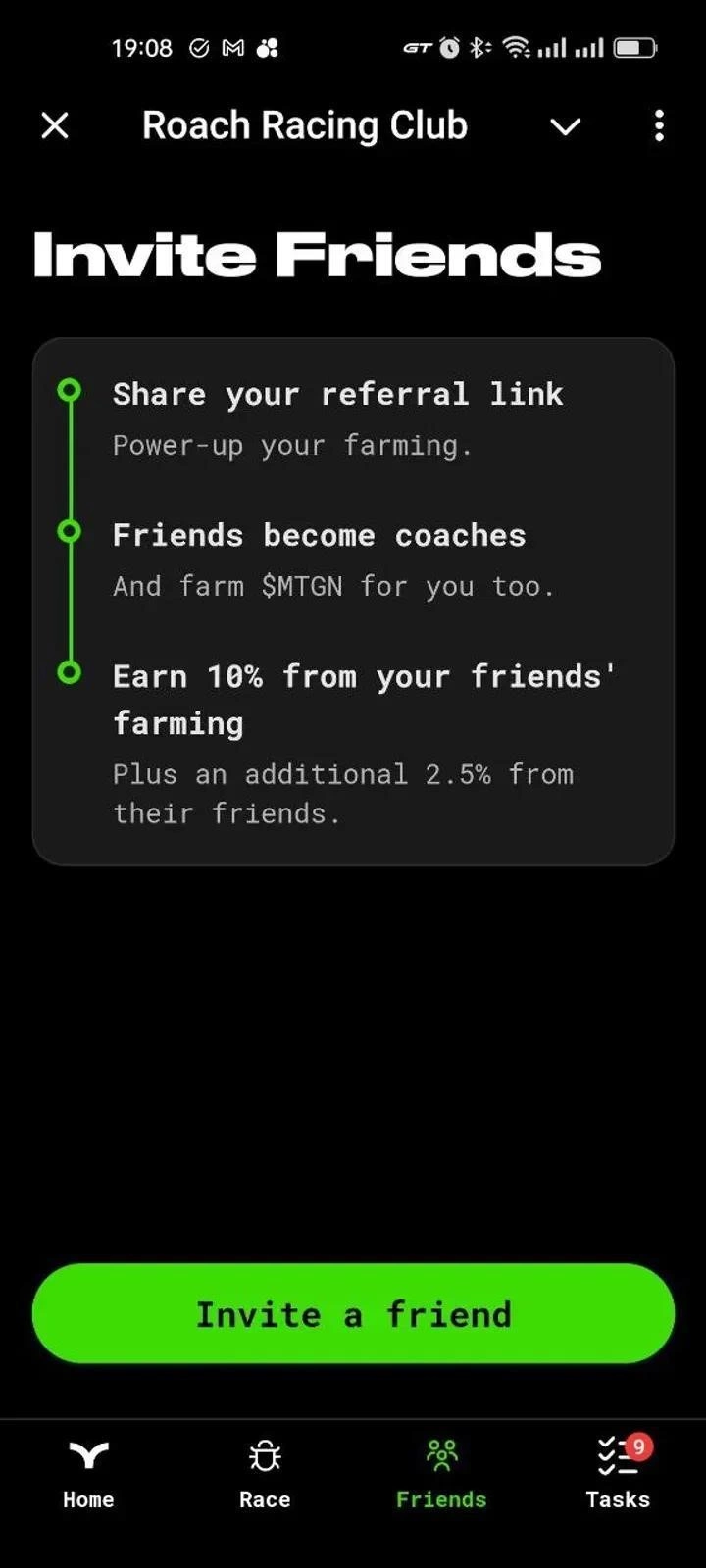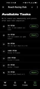 Roach Racing Club - мини-игра про кибер-тараканов, где вы выступаете в роли тренера: собираете и прокачиваете бегунов, участвуете в заездах и зарабатываете внутриигровую валюту MTGN. Игра запускается прямо в мессенджере и поддерживает соревновательные режимы и таблицы лидеров.