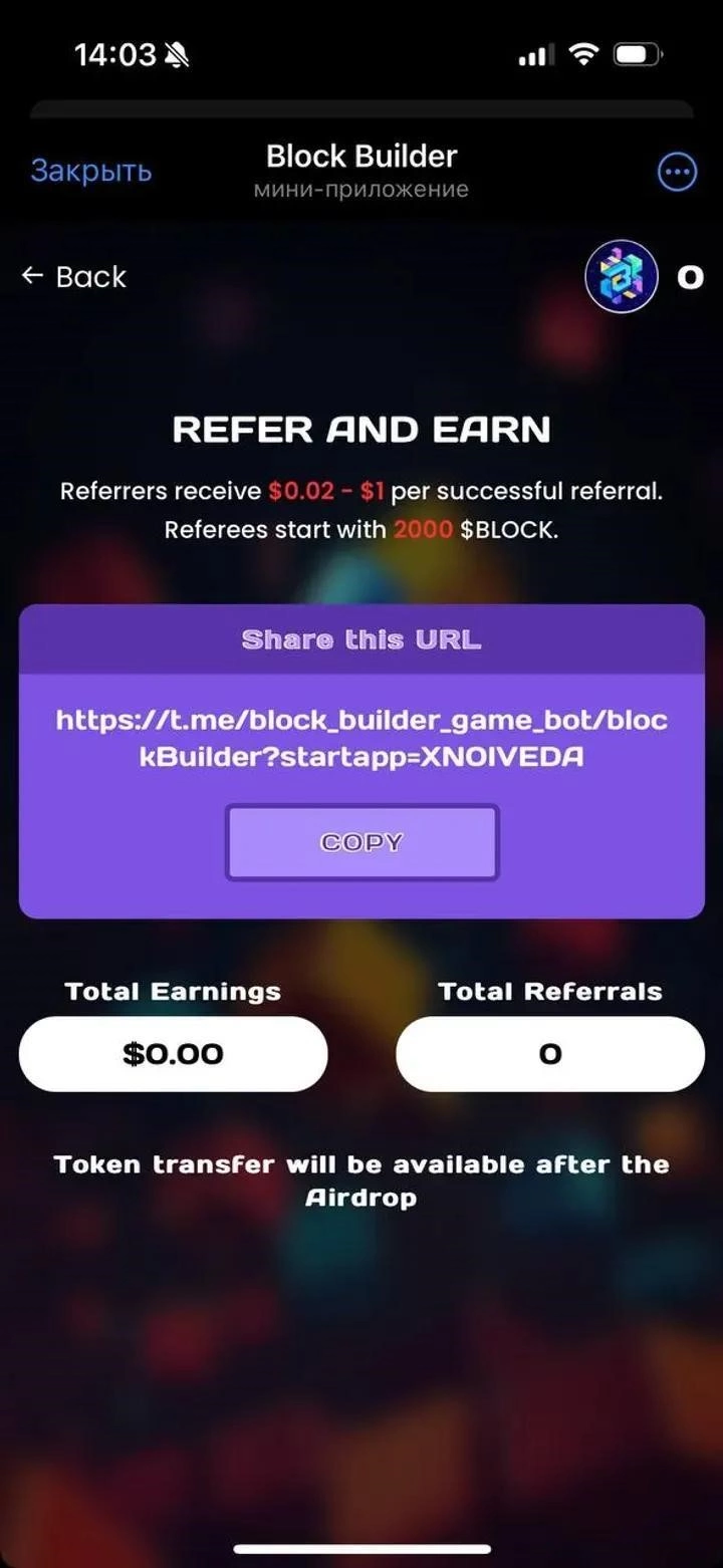 Рабочая ссылка на Block Builder в Телеграм доступна ниже. Если она не открывается, сообщите нам - мы всё исправим.