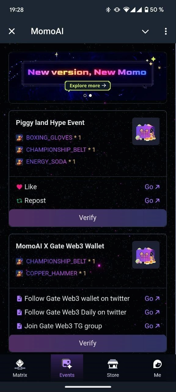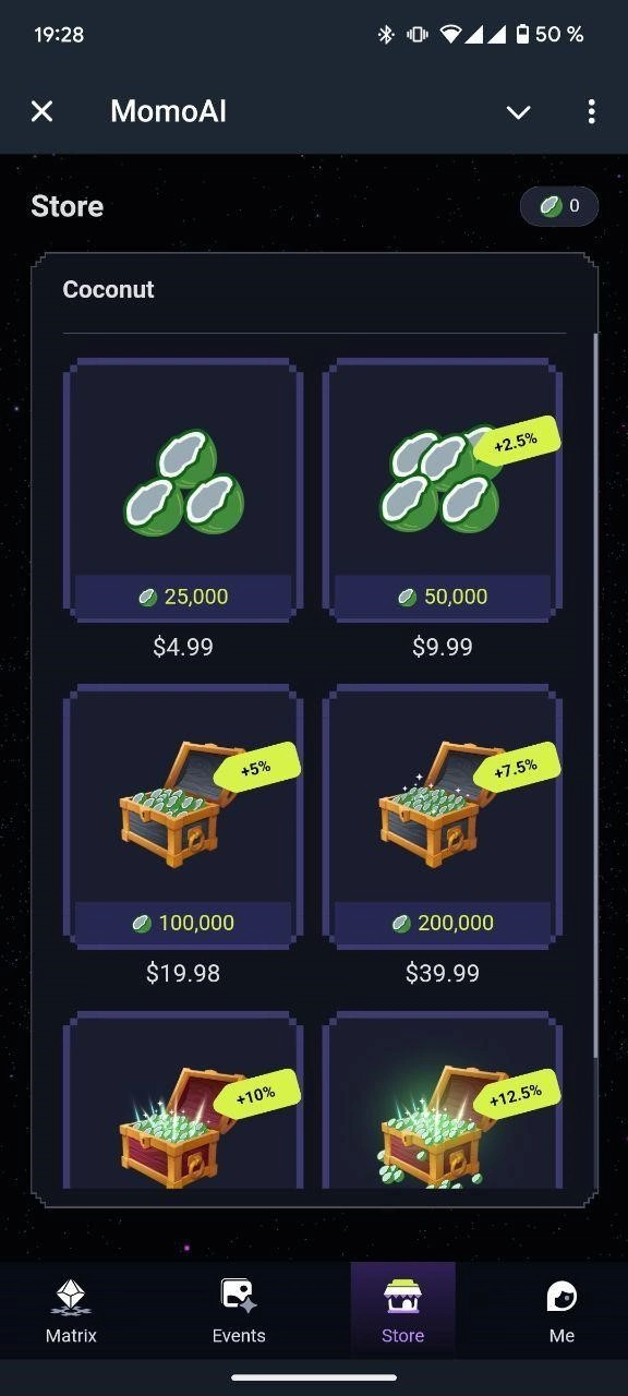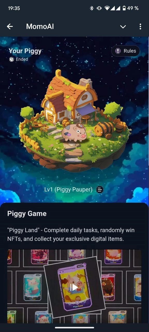 MomoAI - платформа с мини-играми, где продвижение и вовлечение строятся на вирусных механиках и взаимодействии с ИИ; активным игрокам обещают эирдропы токенов. Интерфейс доступен на английском языке.