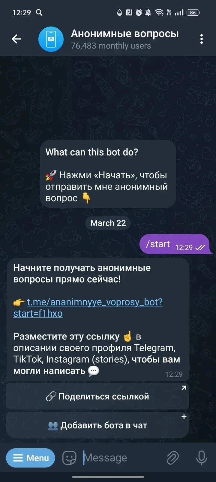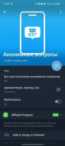 Рабочая ссылка на @ananimnyye_voprosy_bot в Телеграм доступна ниже. Если она не открывается, сообщите нам - мы всё исправим.