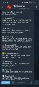 File Converter - утилита для конвертации файлов прямо в чате: изображения, аудио и видео можно быстро перевести в нужные форматы без дополнительных сервисов.