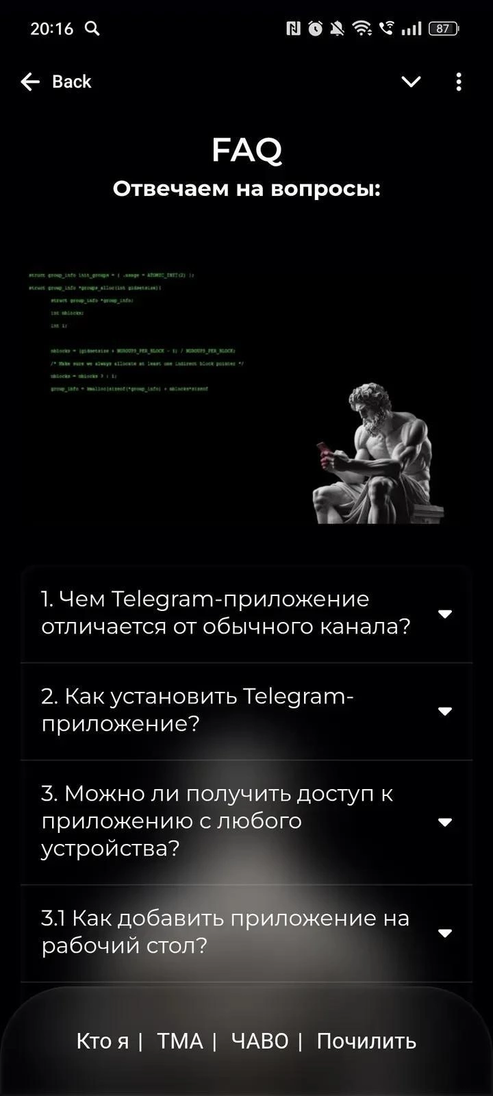 Мини-приложение работает через встроенные возможности платформы мини-аппов и использует авторизацию через аккаунт пользователя. Для корректной работы отдельные утилиты могут запрашивать доступ к необходимым данным.