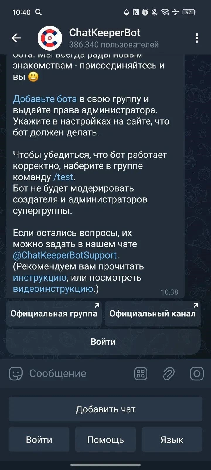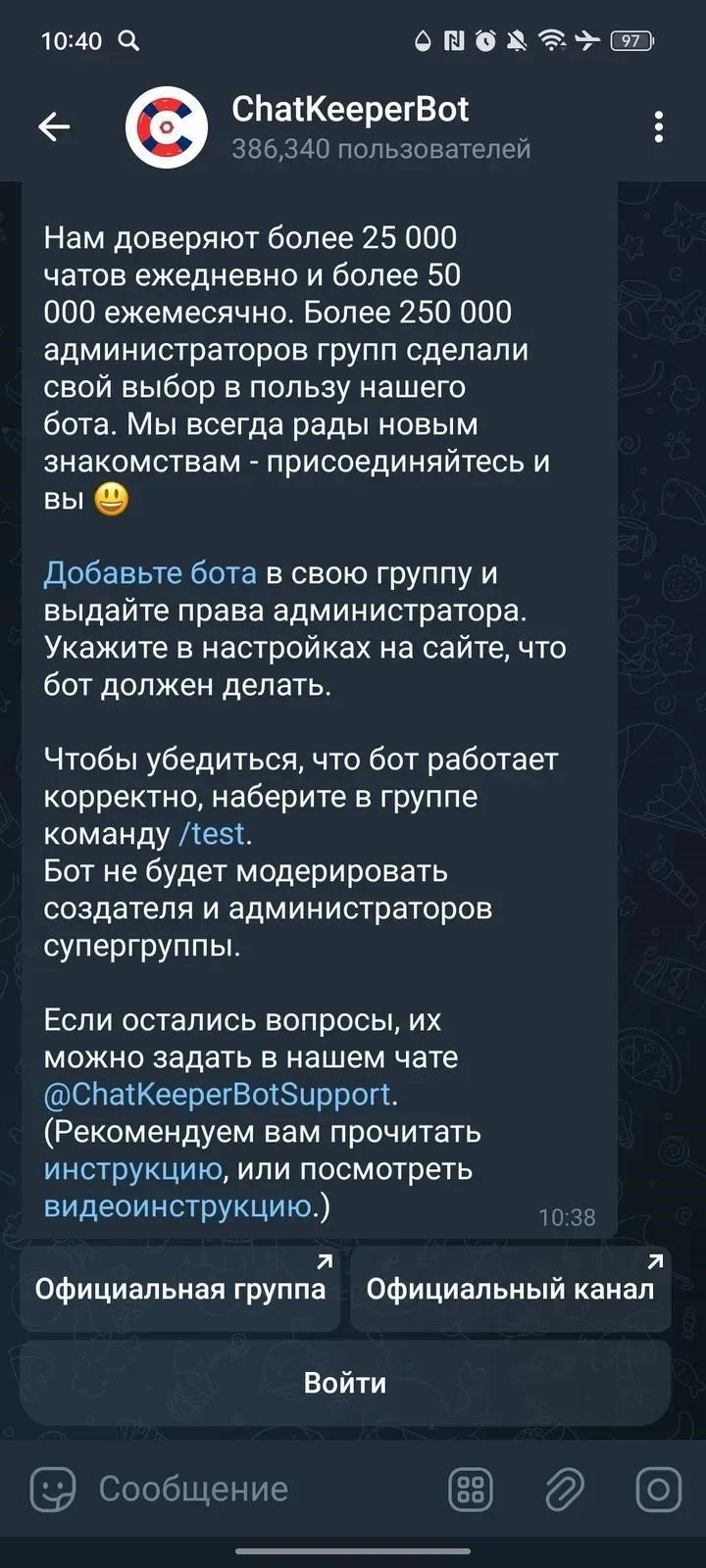 - Небольшим приватным чатам, где автоматическая модерация избыточна.