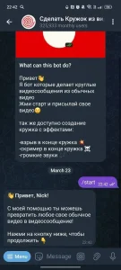 Приложение работает напрямую в мессенджере, не требует установки дополнительного программного обеспечения и использует встроенные возможности платформы. Вся обработка происходит максимально быстро, а итоговое видео готово к публикации в течение нескольких секунд.