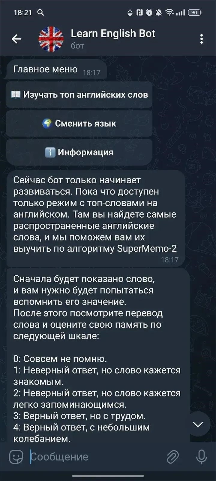 Рабочая ссылка на Learn English Bot в Телеграм доступна ниже. Если она не открывается, сообщите нам - мы всё исправим.