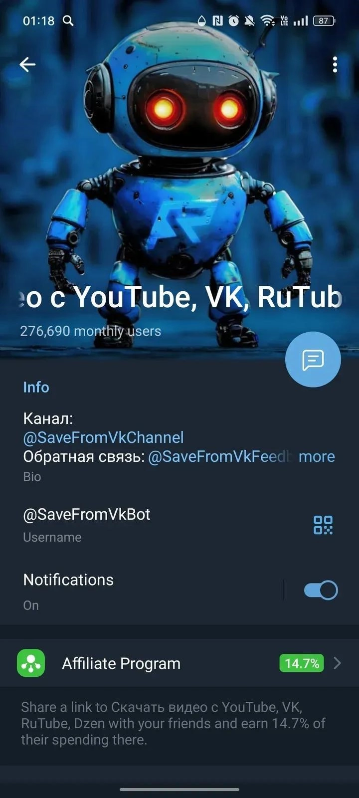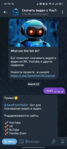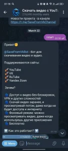 Рабочая ссылка на Скачать из YouTube (@savefromvkbot) в Телеграм доступна ниже. Если она не открывается, сообщите нам - мы всё исправим.